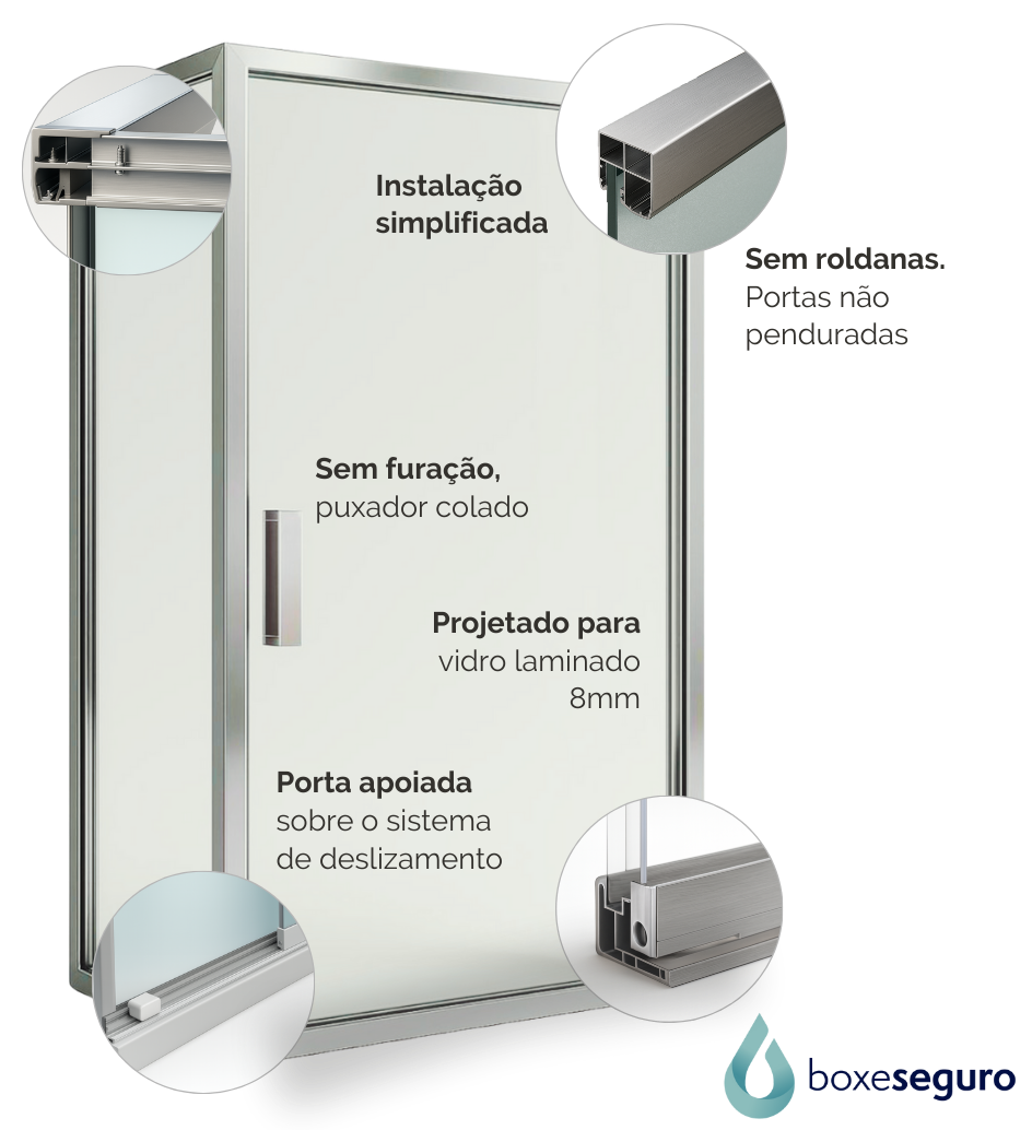 Após 40 anos dos modelos convencionais, o BoxeSeguro chega para revolucionar o mercado com sua tecnologia sem roldanas, desenvolvido para usar o vidro laminado e eliminar as furações nas portas. Mais que um kit box, é a inovação que protege o que mais importa: sua família.